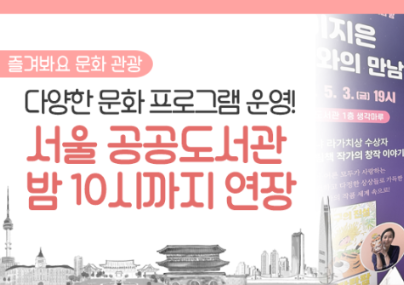 서울시는 앞으로도 시민들이 일상 속에서 더욱 편리하게 책을 읽고, 다양한 문화 프로그램을 즐길 수 있도록 도서관 서비스를 지속적으로 확대해 나갈 계획입니다. 많은 이용 바랍니다!