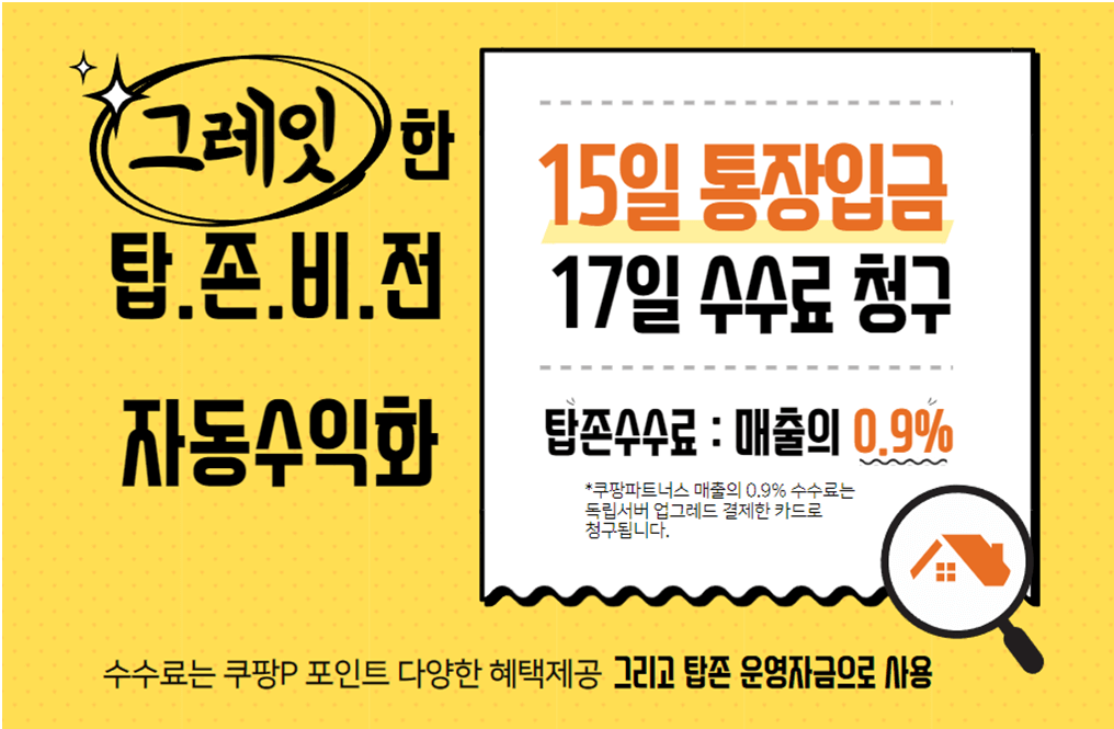 여러분들이 내는 수수료는 쿠팡P 포인트 혜택이 더욱 풍성해 지는데 쓰이고, 탑존 회사 운영비로 쓰여집니다.